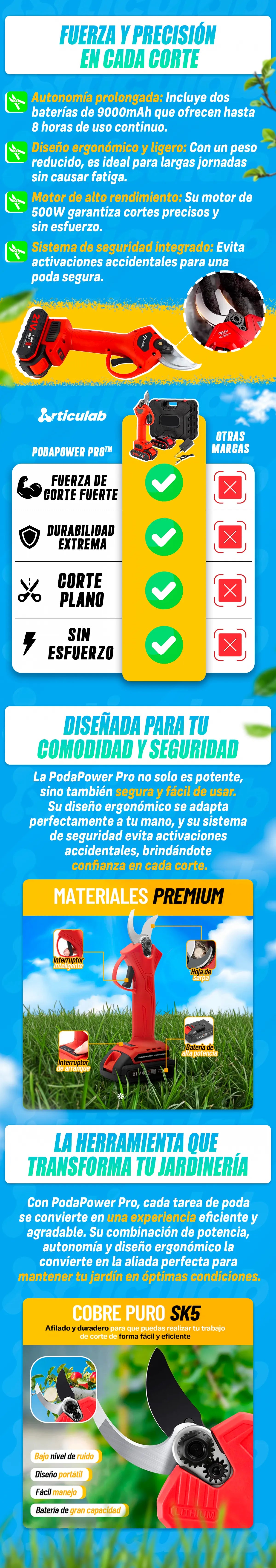 Está diseñada para cortar ramas de árboles y arbustos de hasta 30 mm de diámetro.